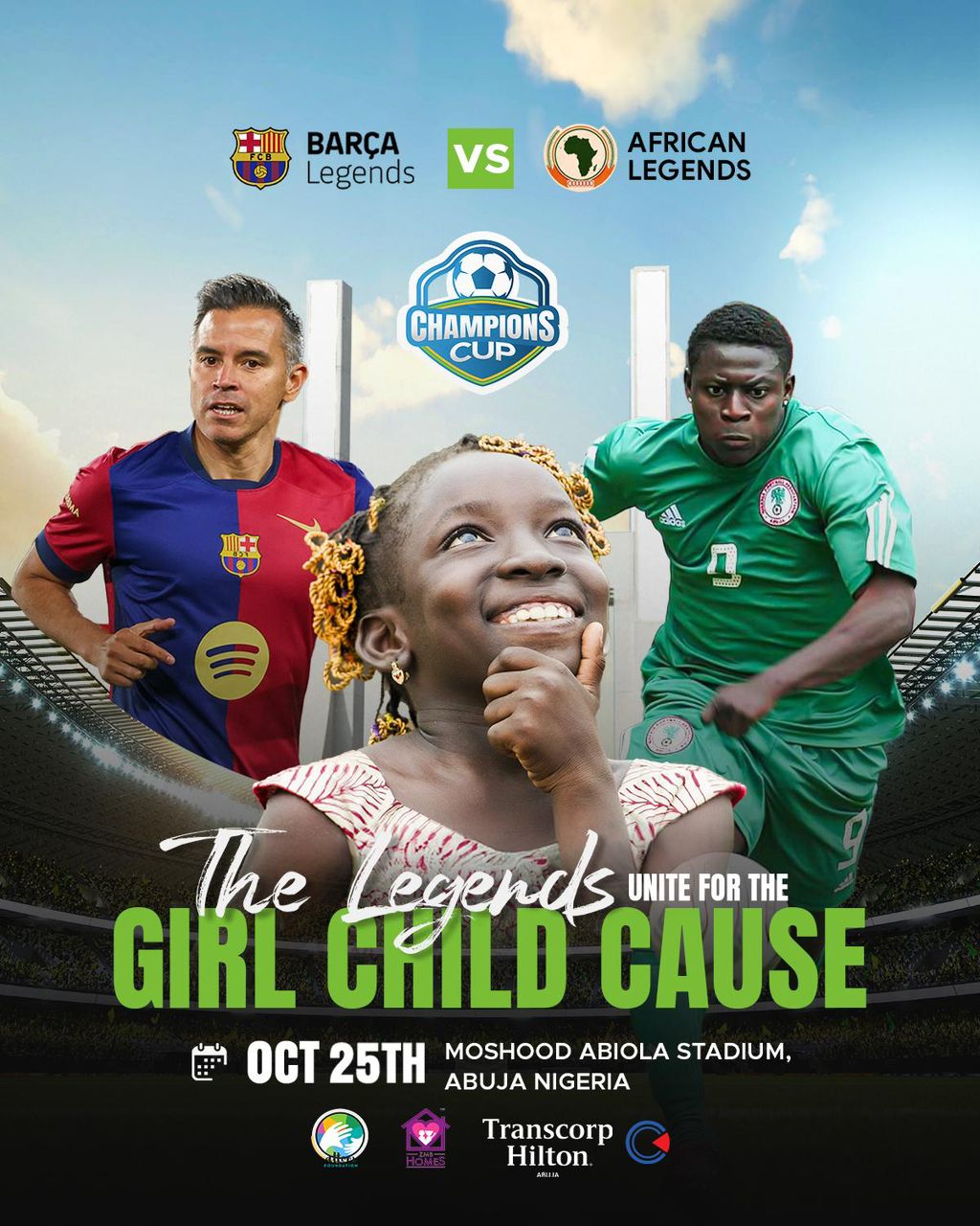 Football lovers are gearing up for an unforgettable spectacle as the Barca Legends and African Legends announce their full squads ahead of the highly anticipated Champions Cup clash scheduled to hold Saturday, October 25th (3pm) at the Moshood Abiola National Stadium, Abuja.