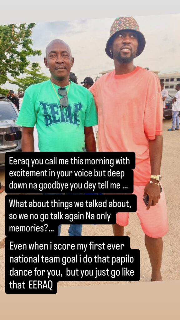 “Eeraq, you called me this morning with excitement in your voice, but deep down, na goodbye you dey tell me…,” Ndidi wrote.