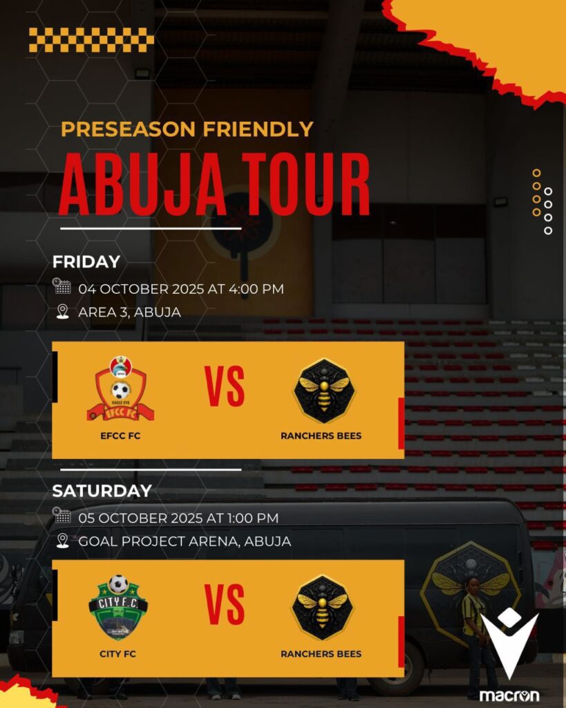 On October 4th and 5th, Ranchers Bees will face EFCC FC and City FC Abuja to fine-tune their skills and build team cohesion ahead of their NNL opener against Gombe United in November.