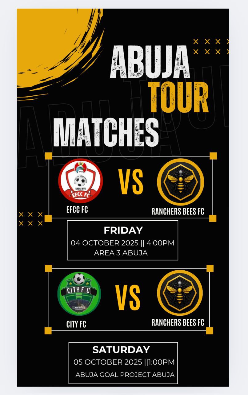 On October 4th and 5th, Ranchers Bees will face EFCC FC and City FC Abuja to fine-tune their skills and build team cohesion ahead of their NNL opener against Gombe United in November.